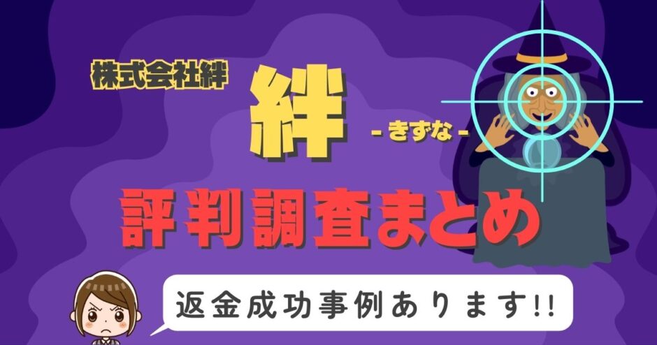 「絆(kizuna/きずな)」を利用した人達から、「気づいたら莫大な利用金額になっていた」「返金の受け取りは可能か?」「退会できない」「いつまでも鑑定が終らない」などの報告や相談がとても多く寄せられています。