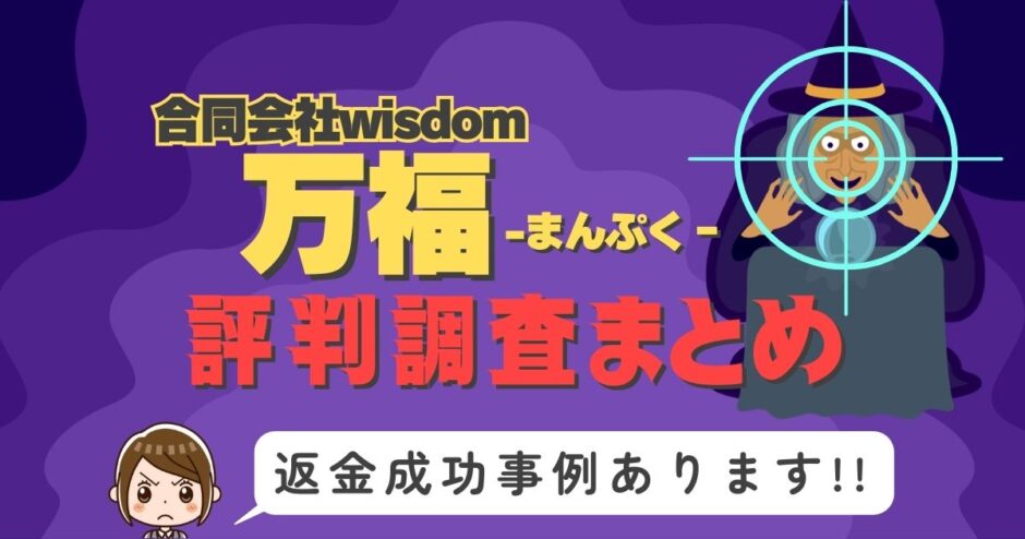 「万福(まんぷく/まんふく)」を利用した人達から、「気づいたら莫大な利用金額になっていた」「返金の受け取りは可能か?」「退会できない」「いつまでも鑑定が終らない」などの報告や相談がとても多く寄せられています。