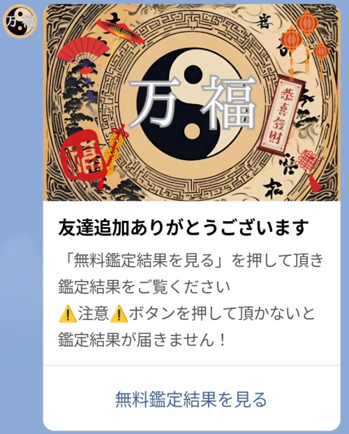 生年月日や性別、名前を入れて進むと無料で鑑定できると案内が届きましたが、しばらく鑑定を続けるとポイントを購入しないと鑑定を続けることができなくなりました。