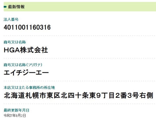 運営会社名HGA株式会社