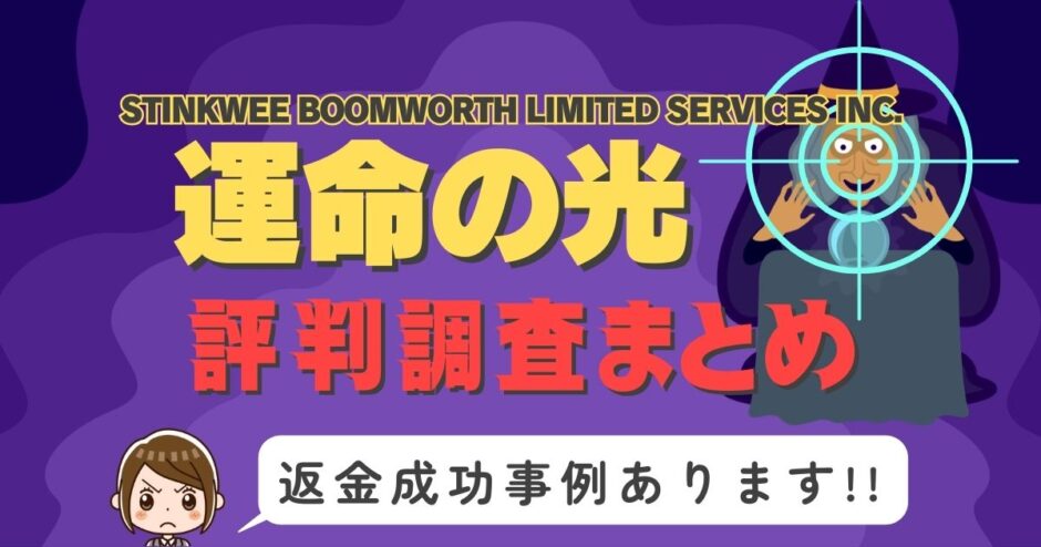 この記事では、「運命の光」の運営会社情報や悪質性、口コミや評判、返金方法などについて詳しく解説しています。「運命の光」でトラブルに遭った人、「運命の光」を利用しようと考えている人、「運命の光」についてもっと知りたい人は、ぜひこの記事を読んでください。